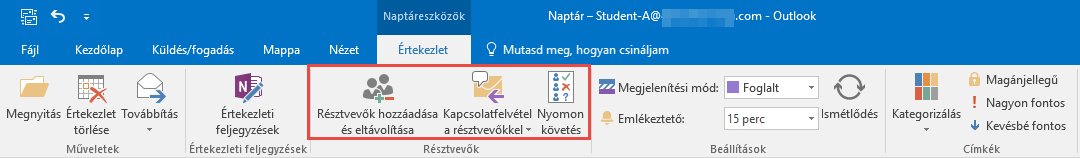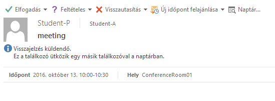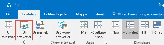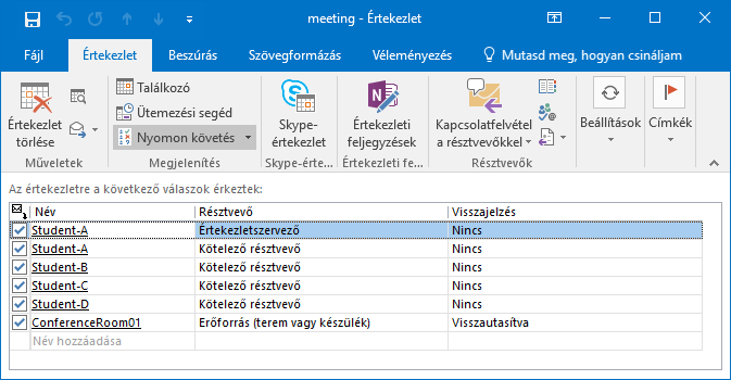 Az értekezletre hívó panelen adjuk meg a résztvevők nevét a Címzett mezőben, állítsuk be az értekezlet témáját, a helyszínét, időpontját.
