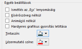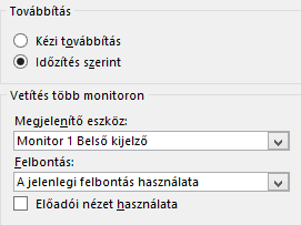 Ezeket a beállításokat a PowerPoint elmenti a bemutatóval együtt, így a bemutató minden vetítésekor érvényesek lesznek.